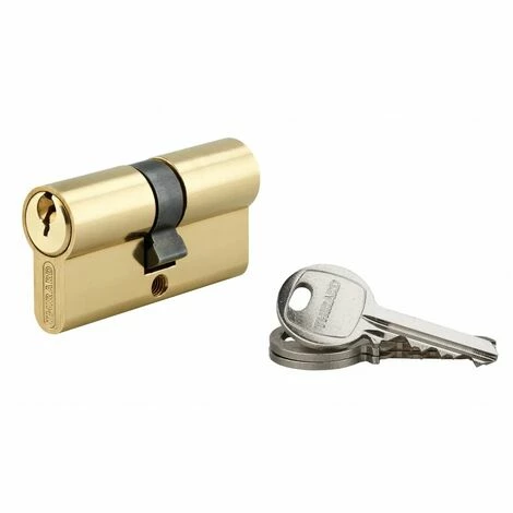 Profil européen laiton. Mécanisme à 5 goupilles. Panneton anti arrachement. 3 clés en acier nickelé.