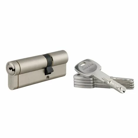 Profil européen laiton. Mécanisme à 6 goupilles protection contre le crochetage. Protection contre le perçage par 1ère goupille + poussoir en acier trempé. Protection contre l’effraction de la partie saillante du cylindre (anti-snap). Panneton anti arrachement. 5 clés plates réversibles laiton nickelé avec carte personnelle.