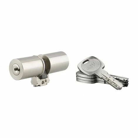 Mécanisme à 8 goupilles (7 en maillechort et 1ère en acier trempé). Protection contre le perçage par 1ère goupille + poussoir en acier trempé Protection contre la casse par poutre en acier. 4 clés plates réversibles en laiton nickelé avec carte de propriété.