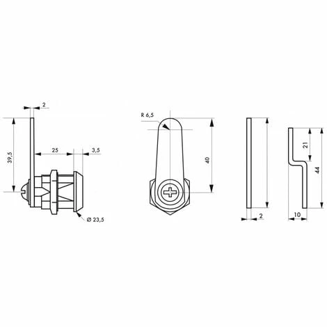 Corps alliage moulé. Mécanisme à paillettes. 1 came plate + 1 came coudée. 2 clés nickelées gainées PVC. Ecrou de fixation.