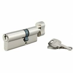 Profil européen laiton. Mécanisme à 5 goupilles. Panneton anti arrachement. 3 clés en laiton nickelé.- Dimension : 30Bx50 mm