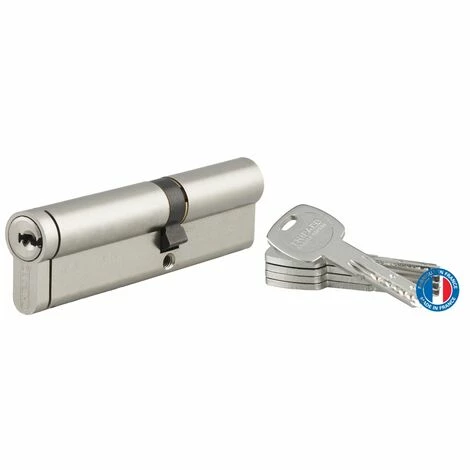 Le cylindre est fourni avec 4 clés plates réversibles et une carte de propriété qui permet d’éviter les reproductions frauduleuses de votre clé.