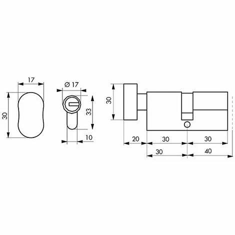 Cylindre de haute sûreté Traffic 6 à bouton en 40 x 30B mm, 40 x 30B mm