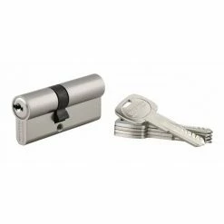 Profil européen laiton. Mécanisme à 6 goupilles contre le crochetage. Protection contre le perçage par aiguille et 1ère goupille en acier trempé. Panneton anti arrachement. Fonction urgence Panneton débrayable : ouverture possible de l’extérieur même si une clé est restée à l’intérieur (sauf conditionnement en boite). 5 clés plates réversibles laiton nickelé avec carte de propriété.