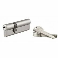 Profil européen laiton. Mécanisme à 6 goupilles contre le crochetage. Protection contre le perçage par aiguille et 1ère goupille en acier trempé. Panneton anti arrachement. Fonction urgence Panneton débrayable : ouverture possible de l’extérieur même si une clé est restée à l’intérieur (sauf conditionnement en boite). 5 clés plates réversibles laiton nickelé avec carte de propriété.