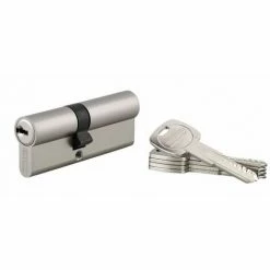 Profil européen laiton. Mécanisme à 6 goupilles contre le crochetage. Protection contre le perçage par aiguille et 1ère goupille en acier trempé. Panneton anti arrachement. Fonction urgence Panneton débrayable : ouverture possible de l’extérieur même si une clé est restée à l’intérieur (sauf conditionnement en boite). 5 clés plates réversibles laiton nickelé avec carte de propriété.