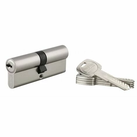 Profil européen laiton. Mécanisme à 6 goupilles contre le crochetage. Protection contre le perçage par aiguille et 1ère goupille en acier trempé. Panneton anti arrachement. Fonction urgence Panneton débrayable : ouverture possible de l’extérieur même si une clé est restée à l’intérieur (sauf conditionnement en boite). 5 clés plates réversibles laiton nickelé avec carte de propriété.