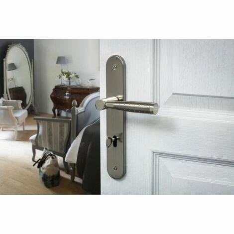 Cet ensemble de poignées Helios est destiné à être placé sur votre porte de chambre. Ce modèle est également disponible en de nombreuses déclinaisons (à condamnation, avec trou de cylindre, sans trou).