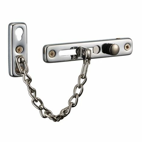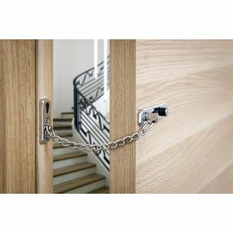 Support et platine acier.Cet entrebâilleur à chaîne en acier vous permet de sécuriser votre porte d’entrée. Ne craignez plus l’intrusion au moment d’ouvrir la porte à des inconnus. Adaptable sur toutes les types de porte, cet entrebâilleur Thirard bloquera votre porte en position entrebâillée et apportera une sécurité supplémentaire à votre maison ou appartement. Cet entrebâilleur de porte d’entrée est disponible en finition chromée ou dorée.- Usage : Porte d’entrée