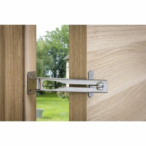 Corps, platine et taquet d’arrêt acier.Ne craignez plus l’intrusion au moment d’ouvrir la porte à des inconnus, grâce à cet entrebâilleur Thirard en acier. Compatible avec toutes les portes, cet entrebâilleur bloquera votre porte en position entrebâillée grâce à son taquet et apportera une sécurité supplémentaire à votre maison ou appartement. Disponible en finition chromée, dorée ou inox, cet entrebâilleur de porte d’entrée mesure 14,8cm.- Usage : Porte d’entrée