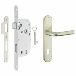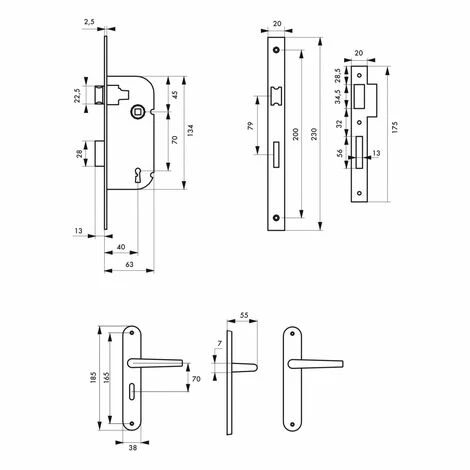Coffre acier embouti. Têtière acier. Demi-tour alliage réversible sans démontage du coffre. Pêne acier. Gâche plate acier. Mécanisme à 1 tour. Carré 7mm, entr’axe 70 mm. 1 clé. 6 variures- Axe : 40 mm