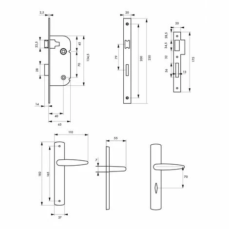 Coffre acier embouti. Têtière acier. Demi-tour alliage réversible sans démontage du coffre. Pêne acier. Gâche plate acier. Carré 7mm, entr’axe 70 mm.- Axe : 40 mm