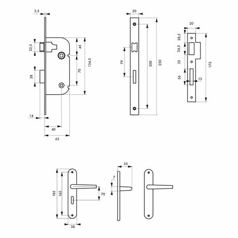 Coffre acier embouti. TĂŞtière acier. Demi-tour alliage rĂ©versible sans dĂ©montage du coffre. PĂŞne acier. Gâche plate acier. CarrĂ© 7mm, entr’axe 70 mm.- Axe : 40 mm