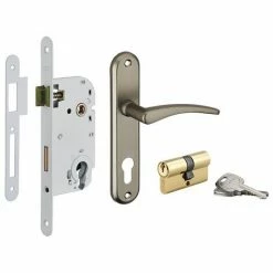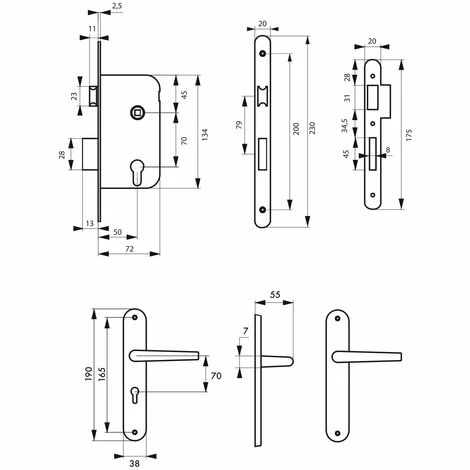 Coffre acier embouti épaisseur 10 mm. Têtière acier. Demi-tour alliage zingué réversible sans démontage du coffre. Pêne acier zingué. Gâche plate acier. Carré 7mm, entr’axe 70 mm. Sans rappel du 1/2 tour par la clé.- Axe : 50 mm