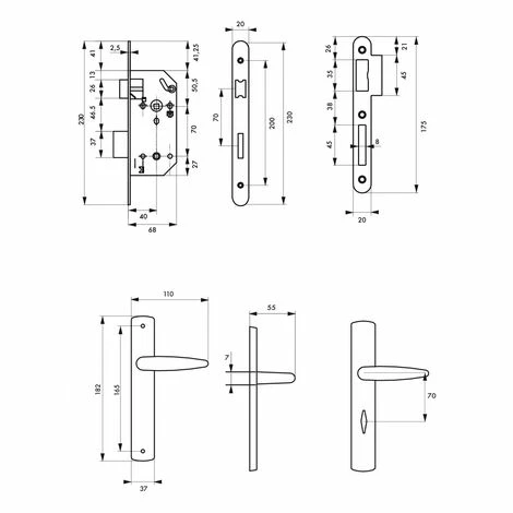 Coffre acier embouti. TĂŞtière acier bouts ronds. Demi-tour bipente alliage rĂ©versible sans dĂ©montage du coffre. PĂŞne acier galvanisĂ©. Gâche plate acier zinguĂ©. CarrĂ© 7mm, entr’axe 70 mm.