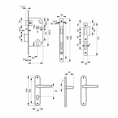 Coffre acier embouti. TĂŞtière acier bouts ronds. Demi-tour bipente alliage rĂ©versible sans dĂ©montage du coffre. PĂŞne acier galvanisĂ©. Gâche plate acier zinguĂ©. MĂ©canisme Ă 2 tours. Rappel du 1/2 tour par la clĂ©. CarrĂ© 7mm, entr’axe 70 mm.
