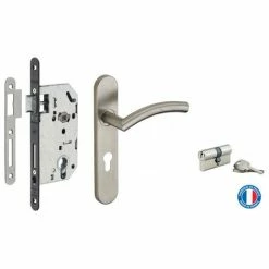 Coffre acier embouti. Têtière acier bouts ronds. Demi-tour bipente alliage réversible sans démontage du coffre. Pêne acier galvanisé. Gâche plate acier zingué. Mécanisme à 2 tours. Rappel du 1/2 tour par la clé. Carré 7mm, entr’axe 70 mm.