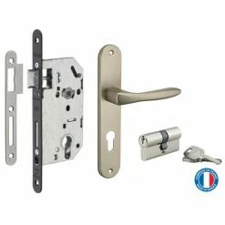 Coffre acier embouti. Têtière acier bouts ronds. Demi-tour bipente alliage réversible sans démontage du coffre. Pêne acier galvanisé. Gâche plate acier zingué. Mécanisme à 2 tours. Rappel du 1/2 tour par la clé. Carré 7mm, entr’axe 70 mm.