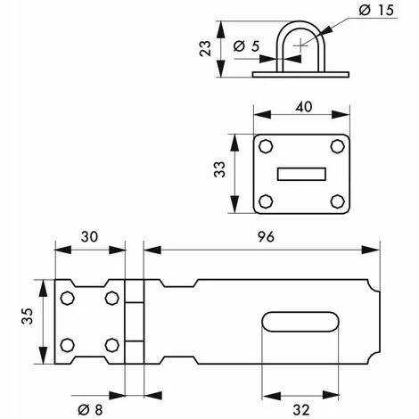 Acier. Recouvrement des vis en position fermée.- Usage : Extérieur