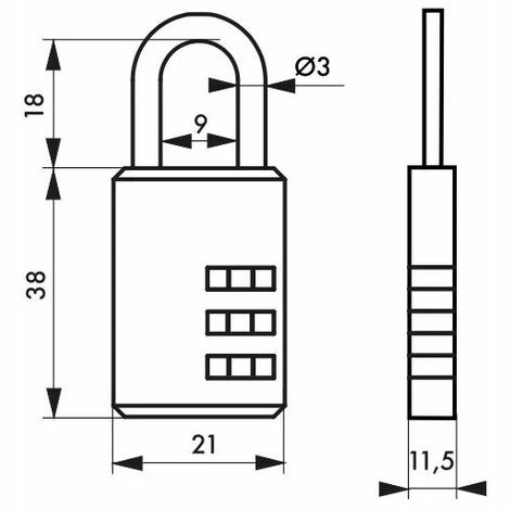 Corps alliage moulé. Anse acier nickelé. Mécanisme à 3 viroles. Combinaison modifiable, 1 000 combinaisons possibles.- Dimension : 21 mm