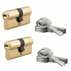 Profil européen laiton. Mécanisme à 6 goupilles contre le crochetage. Protection contre le perçage par aiguille et 1ère goupille en acier trempé. Panneton anti arrachement. 5 clés plates réversibles laiton nickelé avec carte de propriété.