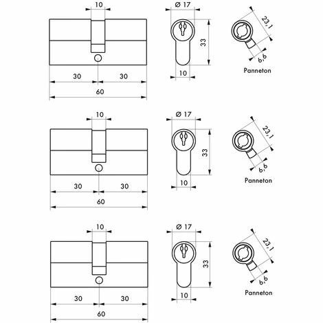 Lot de 2 ou 3 produits s’ouvrant avec la même cléPossibilité de commander des verrous, cadenas et cylindres profilés complémentaires sur le même numéro de clé. En utilisant des serrures et des verrous équipés d’un cylindre profilé interchangeable, on peut répondre à tous types de fermeture avec la même clé. 6 clés acier nickelé.