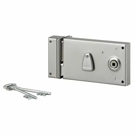 Coffre et gâche acier cambré. Pêne et demi-tour acier en saillie de 5 mm. Canon alliage longueur 40 mm. Entrée de clé laiton sur coffre. Mécanisme à 4 gorges laiton, 2 tours. Pêne 1/2 tour réversible pour porte ouvrant à l’extérieur. Carré 6 mm. 2 clés nickelées. 12 variures. Entrée de clé et de fouillot acier.Cette serrure à appliquer à fouillot en acier est conçue pour verrouiller efficacement votre grille ou portail. Elle est fournie avec deux clés en acier nickelé. Dotée d’un mécanisme à 4 gorges et d’un revêtement anti-corrosion, cette serrure Thirard s’installe facilement et offre un verrouillage efficace et durable de votre grille ou portail. Cette serrure en applique horizontale anti-corrosion est disponible pour une pose à droite ou à gauche.- Dimension : 140x82mm