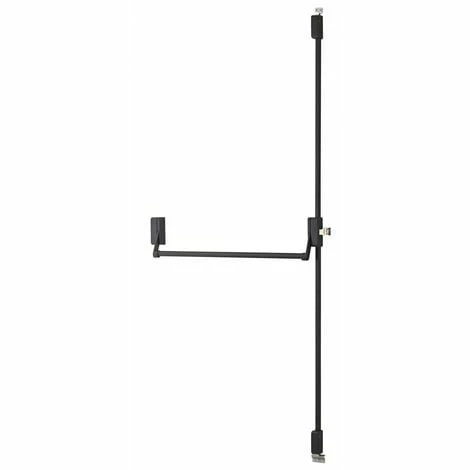 Structure, dimensions et performances conformes à la nouvelle norme européenne CE NF EN1125. Pêne acier zingué. Boîtier acier laqué. Barre aluminium longueur 1,15 m, recoupable. Réversible. Pour porte hauteur maxi 2635 mm. Accessoires : béquille ou bouton de manœuvre extérieure , 1/2 cylindre profilé 30 x 10 mm.Cette serrure antipanique à appliquer est conçue pour équiper tout type de porte servant d’ouverture de secours. La serrure D-cross de Thirard est réversible et répond aux normes européennes. Elle s’installe facilement à gauche comme à droite et offre un verrouillage efficace de votre porte. Cette serrure antipanique en applique est disponible en différentes versions : avec 1 ou 2/3 points de condamnation, ainsi qu’en plusieurs finitions laquées, blanc, noir et gris. Elle peut être complétée avec un cylindre HG, Transit 2 ou Cobra 2 et adaptée grâce au kit rallonge haut.- Dimension : 1150mm