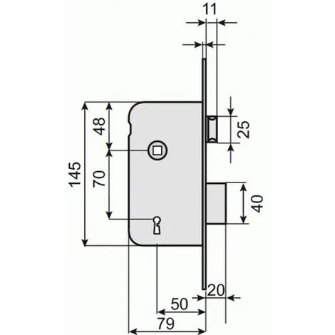 Serrures de sûreté à larder à gorgesSerrure de sûreté à larder – 4 gorges axe 50 mm – type 203 Réversible sans démontage du coffre. Mécanisme à 4 gorges 2 tours de clé. Coffre en acier embouti noir epoxy : 145 x 79 mm. Têtière bouts carrés en acier : 230 x 20 mm. Axe : 50 mm