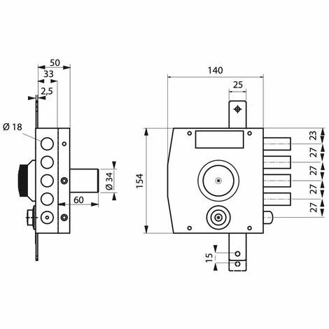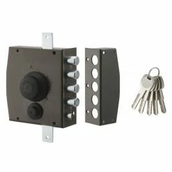 Coffre et gâche acier. Fermeture Ă 2 tours. Rappel du 1/2 tour par la clĂ©. PĂŞnes diam. 18mm. Protection du cylindre par cabochon acier. 5 clĂ©s.Ce boitier de serrure Ă appliquer Ă cylindre en acier est conçu pour verrouiller efficacement votre porte d’entrĂ©e. Il peut ĂŞtre ajoutĂ© Ă une porte dĂ©jĂ Ă©quipĂ©e pour renforcer davantage la sĂ©curitĂ©. Ce boitier Thirard est destinĂ© Ă ĂŞtre complĂ©tĂ© avec un cylindre profilĂ©, vous permettant de choisir le niveau de sĂ©curitĂ© de votre choix. Une gâche Ă©querre de haute rĂ©sistance est fournie, ainsi que la poignĂ©e double pour la version Ă fouillot. DotĂ©e d’un verrouillage Ă trois points, cette serrure s’installe facilement et offre un verrouillage efficace de votre porte pour garantir votre sĂ©curitĂ© et celle de vos biens. Le boitier de serrure en applique verticale Beluga est disponible en diffĂ©rentes versions : avec finition marron ou blanche, avec verrouillage Ă fouillot ou Ă tirage, pour une pose Ă droite ou Ă gauche.- Dimension : 154x140mm