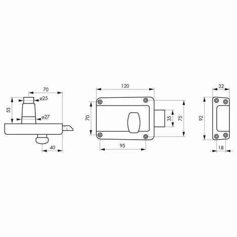 Coffre et gâche acier embouti. Cylindre à goupilles Ø 25 pour porte de 30 mm maxi. Cylindre poussoir pour ouverture de la porte. Condamnation intérieure par bouton. Poignée extérieure PVC. 3 clés nickelées.Cette serrure à appliquer en acier est conçue pour verrouiller efficacement vos portes de garage à déplacement latéral. Elle peut être ajoutée à une porte déjà équipée pour renforcer davantage la sécurité. Cette serrure peut être complétée avec la poignée assortie. Trois clés en acier sont fournies avec cette serrure, pour pouvoir partager l’accès ou pour conserver en cas de perte. Dotée d’un cylindre et d’un bouton poussoir, cette serrure s’installe facilement et offre un verrouillage efficace de votre garage pour garantir votre sécurité et celle de vos biens. Cette serrure en applique horizontale pour garage Thirard est disponible pour une pose à droite ou à gauche.- Dimension : 120x90mm