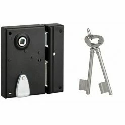 Coffre et gâche acier cambré. Pêne et demi-tour acier. Canon acier longueur 35 mm. Mécanisme à 1 tour. Pêne 1/2 tour réversible pour porte ouvrant à l’extérieur. Carré 7mm. 2 clés nickelées. 6 variures. Entrée de clé et de fouillot acier- Dimension : 70x110mm