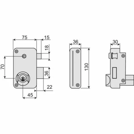 Serrures à cylindre rond optimumSerrures en applique verticales à fouillot à cylindre rond OPTIMUM Coffre de 75 x 130 mm.