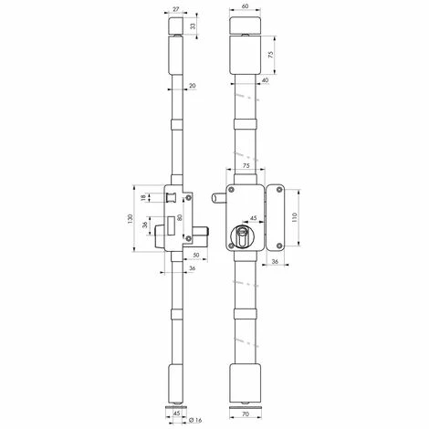| Axe de le serrure | 45mm |