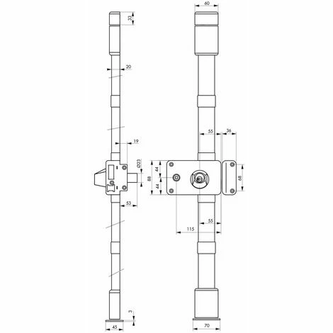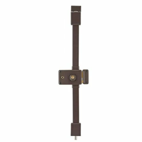 Boîtier en acier embouti ép. 20/10ème. Coffre de 140 x 88 mm. Tringles standard permettant une condamnation de porte de 1,65 m à 2,25 m. Mécanisme intérieur type équerre permettant la manœuvre du 1/2 tour avec la clé, de l’intérieur comme de l’extérieur. Pêne dormant et 1/2 tour en laiton massif. Pêne haut et bas en acier Ø 16 mm sur tringles plates en acier permettant un ajustement très précis à la longueur désirée et ne nécessitant aucune recoupe. Gâche avec têtière de haute résistance. Cache-tringles, guides et gâches de pênes haut et bas en acier ne laissant apparaître aucune vis de fixation. Enjoliveur de cylindre côté intérieur. Carré 6 mm. Le montage des serrures ne nécessite pas d’entaillage spécifique de la porte.
