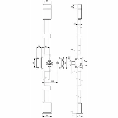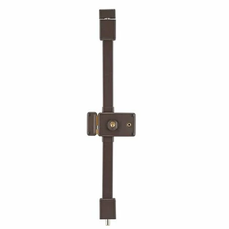 Boîtier en acier embouti ép. 20/10ème. Coffre de 140 x 88 mm. Tringles standard permettant une condamnation de porte de 1,65 m à 2,25 m. Mécanisme intérieur type équerre permettant la manœuvre du 1/2 tour avec la clé, de l’intérieur comme de l’extérieur. Pêne dormant et 1/2 tour en laiton massif. Pêne haut et bas en acier Ø 16 mm sur tringles plates en acier permettant un ajustement très précis à la longueur désirée et ne nécessitant aucune recoupe. Gâche avec têtière de haute résistance. Cache-tringles, guides et gâches de pênes haut et bas en acier ne laissant apparaître aucune vis de fixation. Enjoliveur de cylindre côté intérieur. Carré 6 mm. Le montage des serrures ne nécessite pas d’entaillage spécifique de la porte.