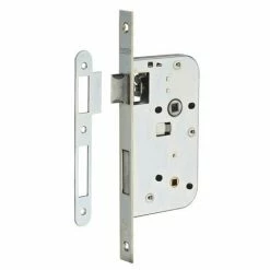 Coffre acier embouti. Têtière acier. Demi-tour réversible sans démontage du coffre. Pêne alliage zingué. Gâche plate acier. Carré 7mm, entr’axe 70 mm.
