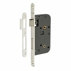 Coffre acier embouti. Têtière acier. Demi-tour réversible sans démontage du coffre. Pêne alliage zingué. Gâche plate acier. Carré 7mm, entr’axe 70 mm.