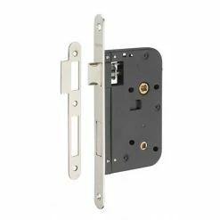 Coffre acier embouti. Têtière laiton. 1/2 tour laiton réversible sans démontage du coffre. Pêne laiton. Carré 7mm. Gâche plate selon finition.- Dimension : 88.5x145mm