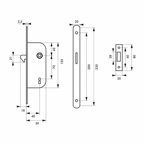 Coffre acier embouti. Têtière acier bouts ronds. Pêne crochet acier. Gâche plate acier. Carré 7mm, entr’axe 70 mm.Cette serrure à encaster en acier est conçue pour verrouiller efficacement vos portes intérieures. Une gâche plate en acier et deux clés sont fournies avec la serrure. Cette serrure de la marque Thirard s’installe facilement à droite comme à gauche et offre un verrouillage efficace de votre porte pour garantir votre intimité. Cette serrure dispose d’une têtière à bouts carrés et est disponible en différentes versions : à condamnation, bec de cane ou pêne dormant.- Dimension : 59x135mm