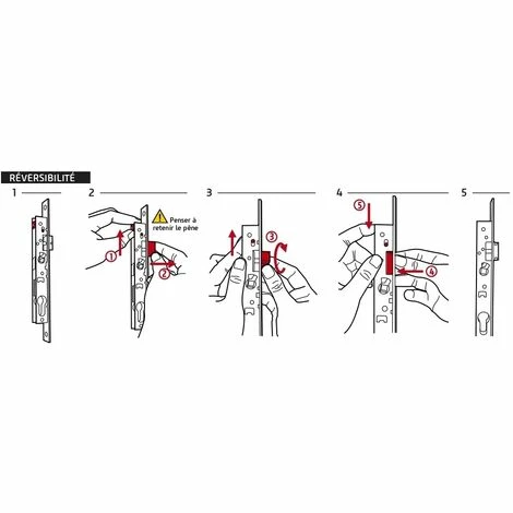 Coffre acier embouti. Têtière acier. Demi-tour alliage réversible sans démontage du coffre. Pêne alliage. Gâche plate acier. Mécanisme à 1 tour. Carré 7mm, entr’axe 70 mm. Sans rappel du 1/2 tour par la clé.- Axe : 40 mm