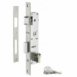 Coffre acier. Têtière inox. Demi-tour réversible sans démontage du coffre. Rappel du 1/2 tour par la clé. Pêne alliage nickelé. Gâche plate inox. Carré 8 mm avec fourreau réducteur 7 mm. Entr’axe 70 mm.