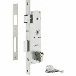 Coffre acier. Têtière inox. Demi-tour réversible sans démontage du coffre. Rappel du 1/2 tour par la clé. Pêne alliage nickelé. Gâche plate inox. Carré 8 mm avec fourreau réducteur 7 mm. Entr’axe 70 mm.