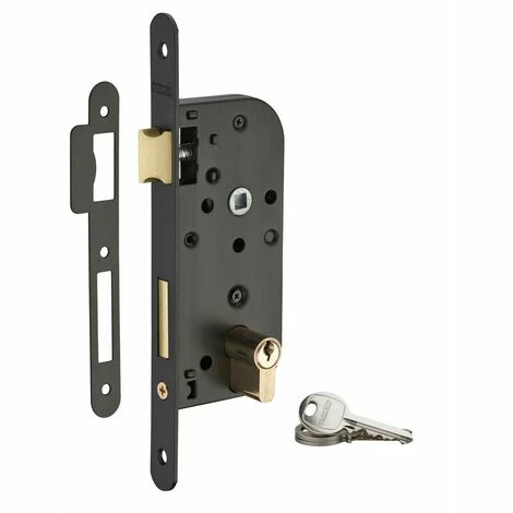 Coffre acier embouti épaisseur 15 mm. Têtière acier. 1/2 tour zamak réversible sans démontage du coffre. Pêne laiton. Gâche plate acier zingué. Mécanisme à 2 tours. Rappel du 1/2 tour par la clé. Carré 7mm, entr’axe 70 mm- Dimension : 69x150mm
