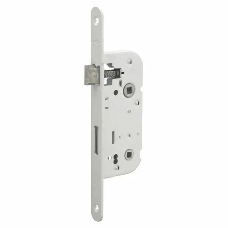 Coffre acier embouti. Têtière acier. Demi-tour alliage réversible sans démontage du coffre. Pêne acier. Gâche plate acier. Carré 7mm, entr’axe 70 mm.