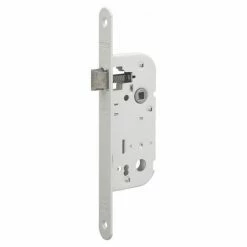 Coffre acier embouti. Têtière acier. Demi-tour alliage réversible sans démontage du coffre. Gâche plate acier. Carré 7mm.- Dimension : 59x135mm