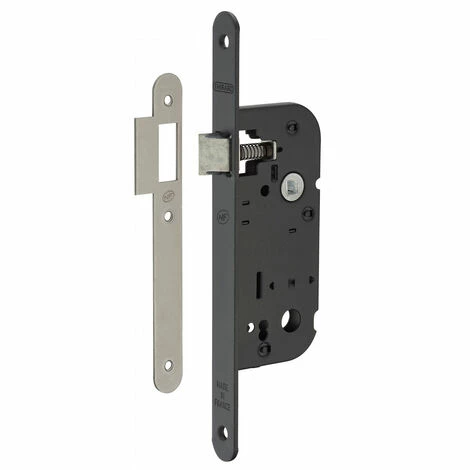 Coffre acier embouti. Têtière acier. Demi-tour alliage réversible sans démontage du coffre. Gâche plate acier. Carré 7mm.