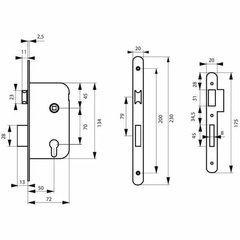 Coffre acier embouti Ă©paisseur 10 mm. TĂŞtère acier. Demi-tour alliage zinguĂ© rĂ©versible sans dĂ©montage du coffre. PĂŞne acier zinguĂ©. gâche plate acier. CarrĂ© 7 mm, entr’axe 70 mm. Sans rappel du 1/2 tour par la clĂ©.