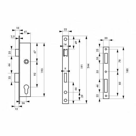 Coffre acier. Têtère inox. Demi-tour réversible sans démontage. du coffre. Rappel du 1/2 tour par la clé. Pêne alliage nickelé. gâche inox. Carré 8 mm, entr’axe 92 mm.