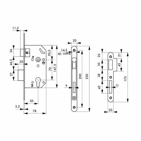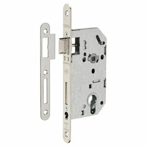 Adapté pour les portes d’intérieur à l’axe à 50mm, ce boitier de serrure Monomax conviendra particulièrement aux accès restreints comme des locaux ou des bureaux. Son coffre au carré de 7mm et son pêne en acier complètent son demi-tour bipente réversible pour une efficacité optimale. Cette Monomax offre un verrouillage efficace grâce à un mécanisme à deux tours et au rappel du demi-tour par la clé. Cette serrure à encastrer est garantie 10 ans et certifiée NF de niveau 2. Elle est disponible avec un carré de 8mm (sur demande) et une têtière aux bouts arrondis dans les finitions epoxy noir, acier ou inox. Ce boitier de serrure est à compléter avec un cylindre profilé.